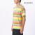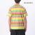 マルチカラーのボーダーTシャツ。左胸ポケットにタグを配しています。