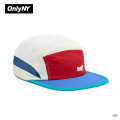 ハイプロファイル5パネルハット、ピンチフロント付き。 100%軽量ナイロン。 スクリーン印刷されたロゴ。 伸縮性のあるナイロン製ストラップクロージャー、プラスチックバックル付き。 テーピングされた縫い目。