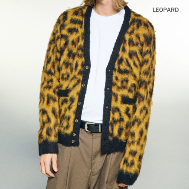 レオパード柄のカーディガンセーター。