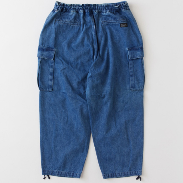 程よい肉感の12.5ozデニムを使用したカーゴパンツ。ニータックをプラスすることで、より立体的なシルエットを実現しアクティブな動きにも対応してくれるアイテム。ウォッシュ加工を施した柔らかな穿き心地の良さはもちろんのこと、Dリングを備えキーホルダーやカラビナを装着可能。フロントのロゴ刺繍とバックのブランドネームがさり気なく主張してくれる。