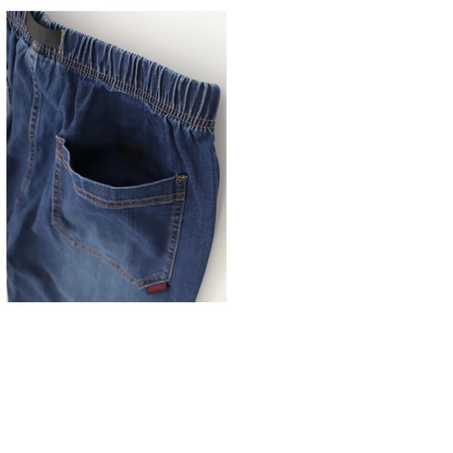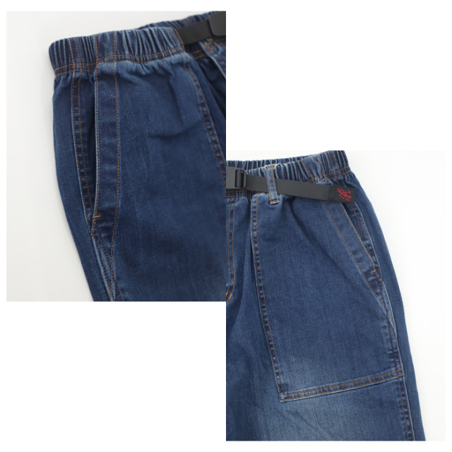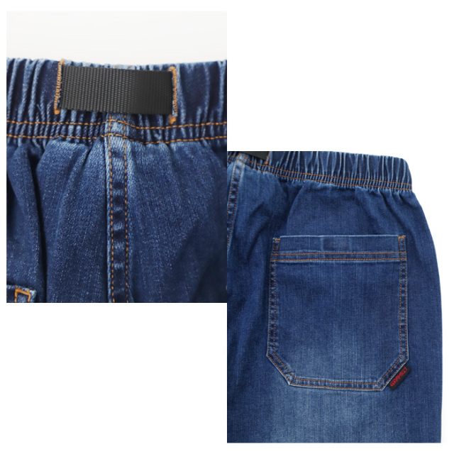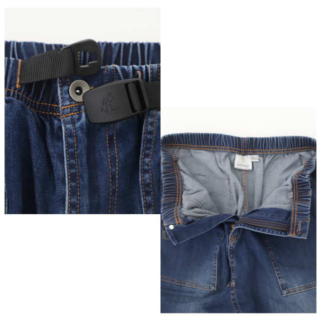 ウエストはイージー仕様にウェビングベルトを組み合わせ、リラックスした穿き心地とフィット感の調整を両立。